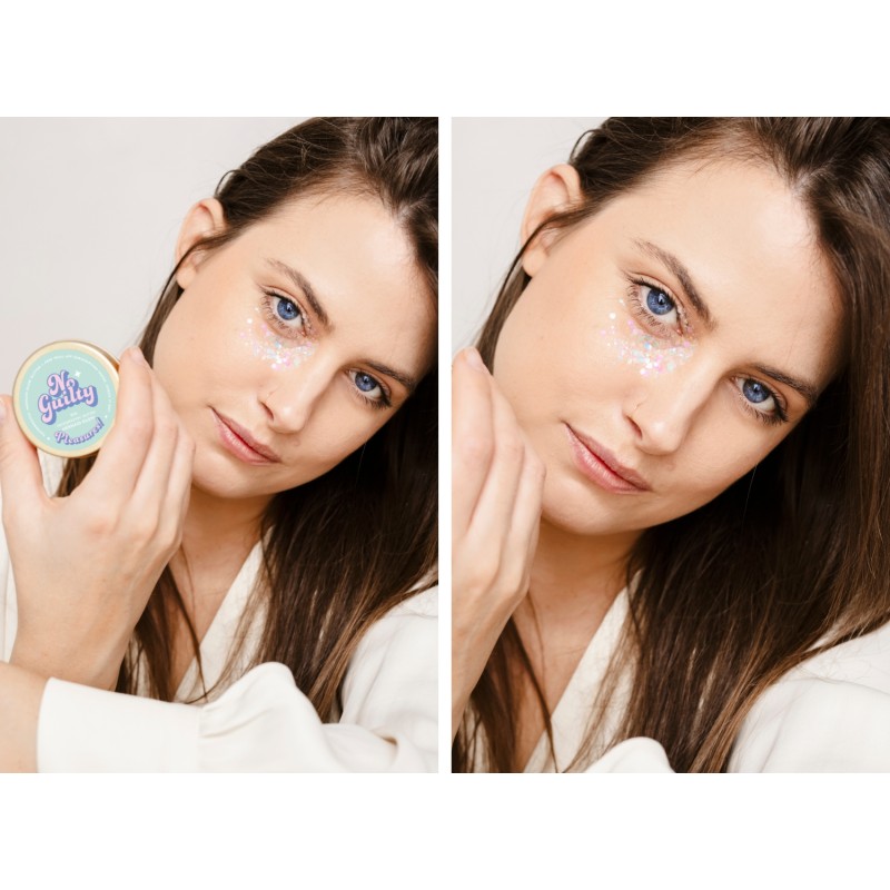 Facegroovin’ Mermaid Glow Glitter wygląda, jakby wpadł prosto z rafy koralowej – opalizuje, skrzy się i lśni w nieoczywisty sposób. Trochę jak błysk w oku, trochę jak morskie światło na skórze. A wszystko to – bez plastiku i bez wymówek.