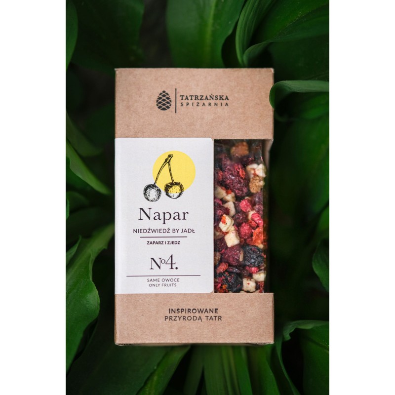 Napar NIEDŹWIEDŹ BY JADŁ to owocowy rarytas, który smakuje tak dobrze, że aż szkoda go tylko pić — owoce można po prostu… zjeść! To coś pomiędzy pysznym naparem a deserem. Idealny dla tych, którzy chcą mieć ciastko i zjeść ciastko. A właściwie — napić się i zjeść owoce.