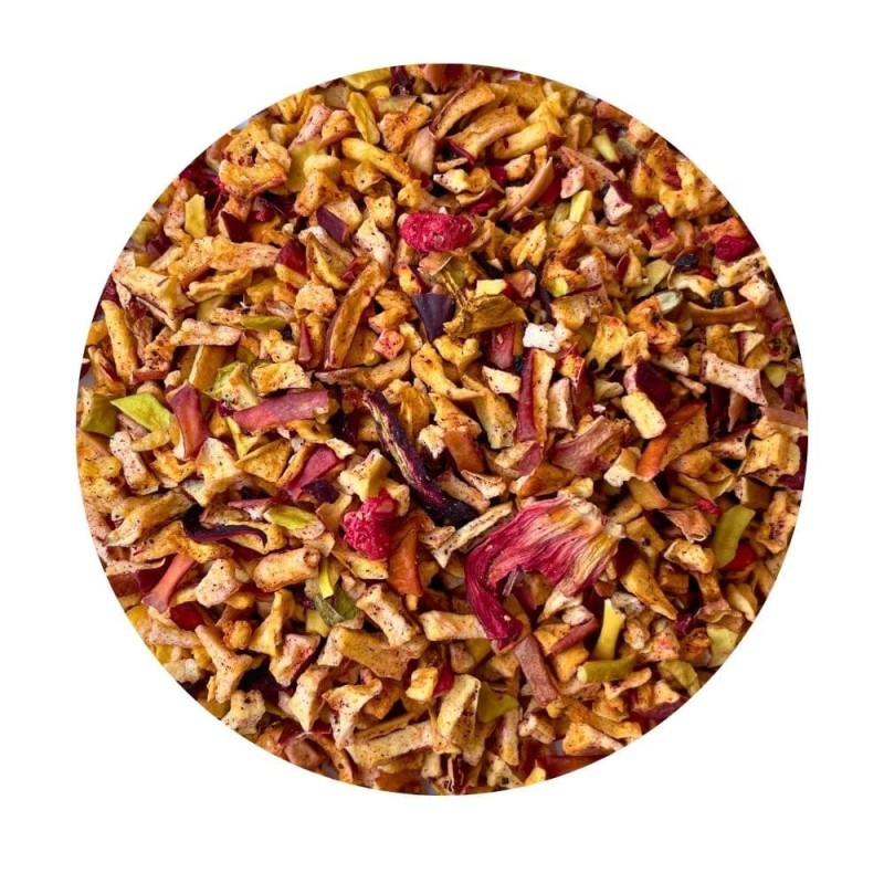 To mieszanka lekka, bez kofeiny, oparta na hibiskusie i owocach. Nadaje się do picia wieczorem, dla dzieci i dla wszystkich, którzy chcą czegoś ciepłego, miękkiego i po prostu… dobrego.