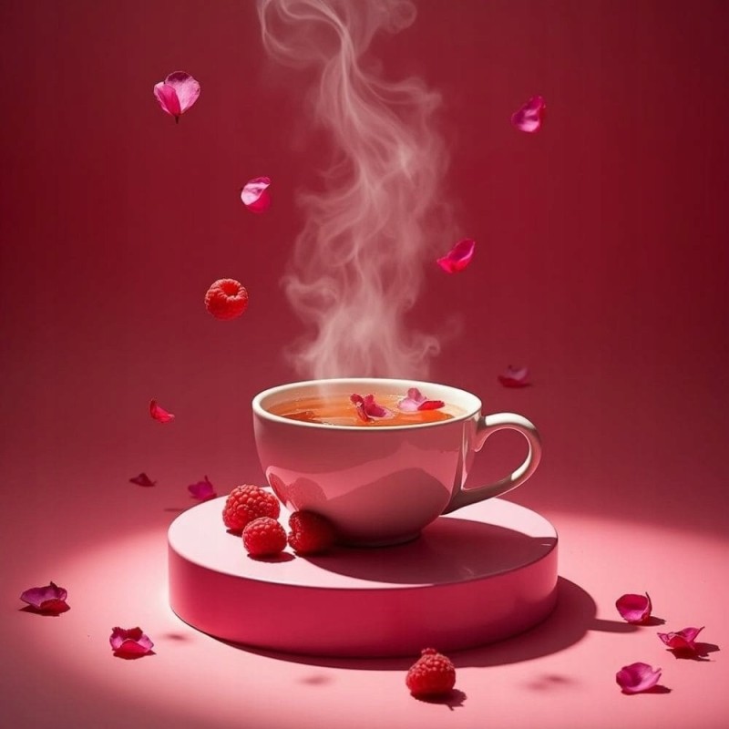 Połączenie maliny i róży od wieków kojarzone jest z domem, bliskością i spokojem. Malina daje miękką słodycz i owocowe ciepło, róża – elegancję i lekko romantyczną nutę. Razem tworzą napar, który nie dominuje, tylko towarzyszy.