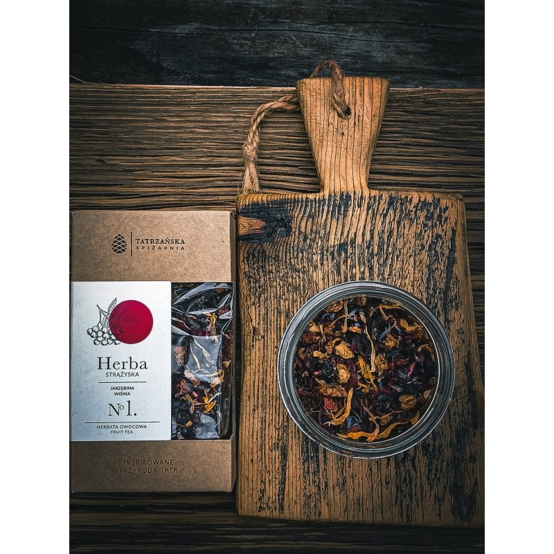 Tu wszystko się zaczęło. STRĄŻYSKA to pierwsza autorska mieszanka Tatrzańskiej Spiżarni – i od razu klasyk. Jarzębina i dzika róża przywodzą na myśl górskie szlaki, wiśnia dodaje głębi, a jabłko i płatki kwiatów – lekkości i uroku. Herbatka z charakterem, jak dobra opowieść z Zakopanego – można ją pić długo i z przyjemnością.