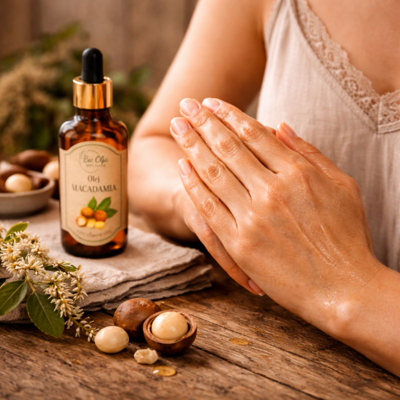 olej z makadamii | olejek makadamia | olej roślinny | olej nierafinowany | olej zimnotłoczony | bioolja | pielęgnacja twarzy | pielęgnacja ciała | pielęgnacja włosów | skóra sucha | skóra wrażliwa | skóra dojrzała | naturalna pielęgnacja | kosmetyki naturalne | kosmetyki wegańskie | ciąża safe | pielęgnacja blizn | pielęgnacja rozstępów