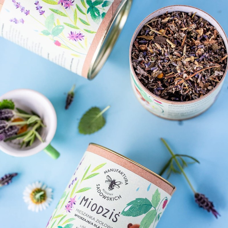 Herbatka dla dzieci Miodziś to ziołowa mieszanka z rumiankiem, lawendą, melisą i lukrecją. Naturalnie słodka, bez cukru i aromatów. Odpowiednia od 12. miesiąca życia. Idealna na wyciszenie i codzienne picie.