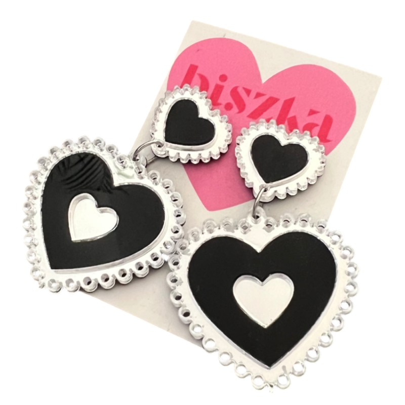 Kolczyki Amour Maxi Czarno Srebrne | Biszka
