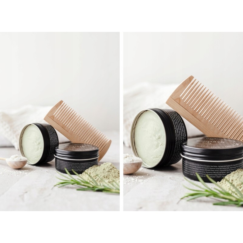 Niewielką ilość glinki rozgrzej w dłoniach i rozprowadź na wilgotnych lub suchych włosach. Ułóż po swojemu. Chcesz mocniejszy chwyt? Dodaj drugą warstwę – bez przesady, bo to nie lasagne.