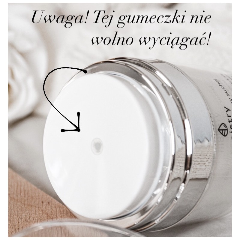 UWAGA! Nie wolno wyjmować gumeczki! To są opakowania airless (bez dostępu powietrza), a ta gumeczka zabezpiecza produkt!