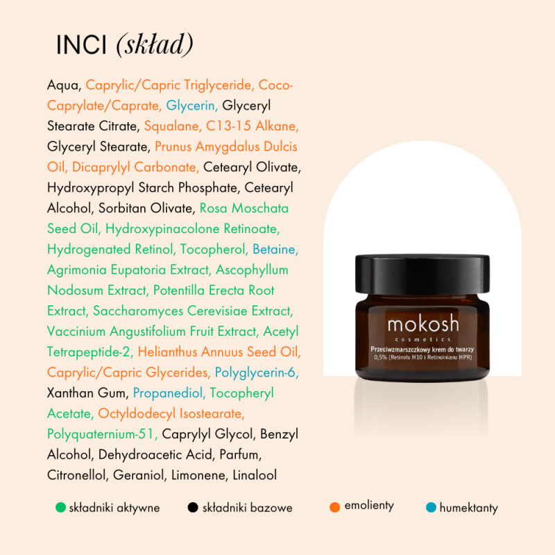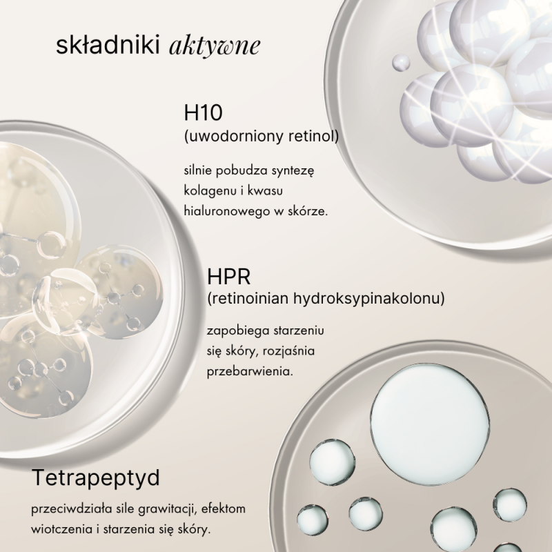 - kompleks retinoidów 0,5% (H10 i HPR) – zaawansowane działanie bez drażnienia