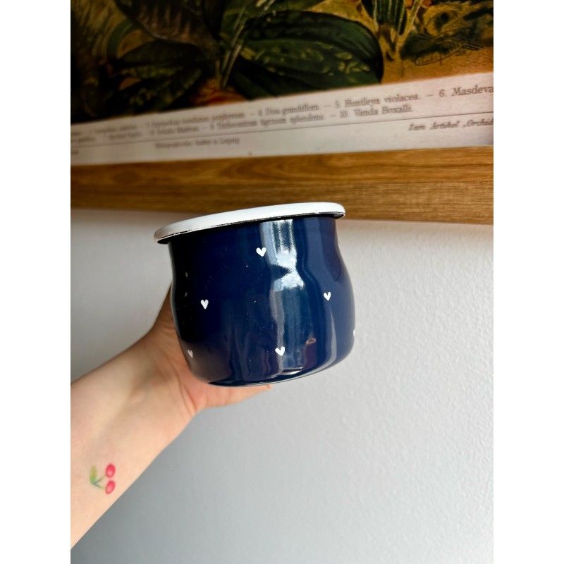 Emaliowany kubek w serduszka | granatowy | 330 ml