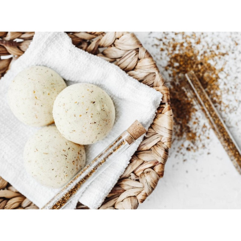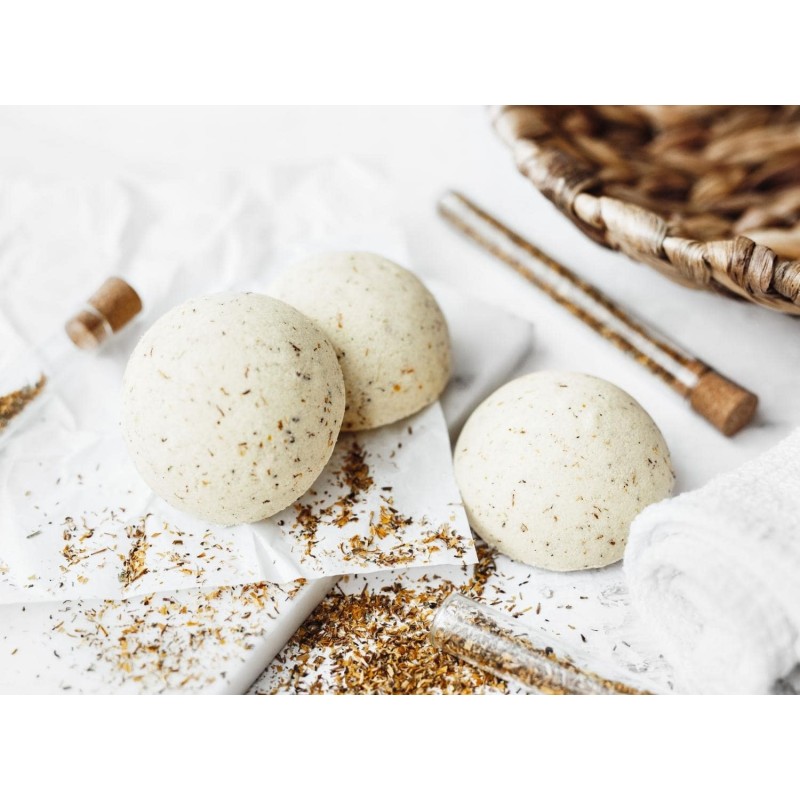 Wrzuć półkulę do wanny z ciepłą wodą, pozwól jej się rozpuścić i… odpłynąć. Po kąpieli spłucz ciało wodą i delikatnie osusz – bez balsamu, bo i po co. Uważaj przy wychodzeniu – oleje mogą sprawić, że wanna będzie śliska. Po wszystkim opłucz wannę i wyłów zioła z odpływu.