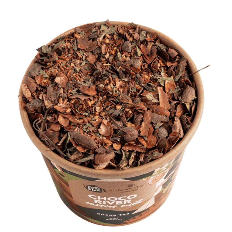 Herbatka czy deser? Choco River nie musi wybierać. To sypana mieszanka z łupin kakaowca, mięty pieprzowej, rooibosa, gryki i kokosa – inspirowana duetem czekolady i mięty. Zaparz, zanurz się w aromacie i pozwól, by napar przypominał miętową czekoladkę… tylko w zdrowszej, zaskakująco oryginalnej wersji.
