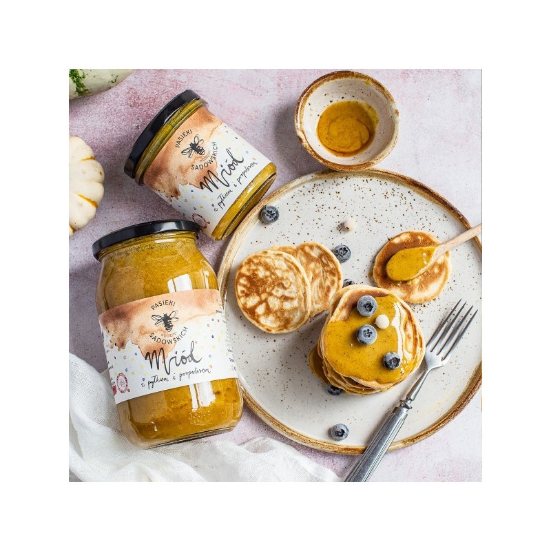 Miód z pyłkiem i propolisem | 430g | Pasieki Sadowskich