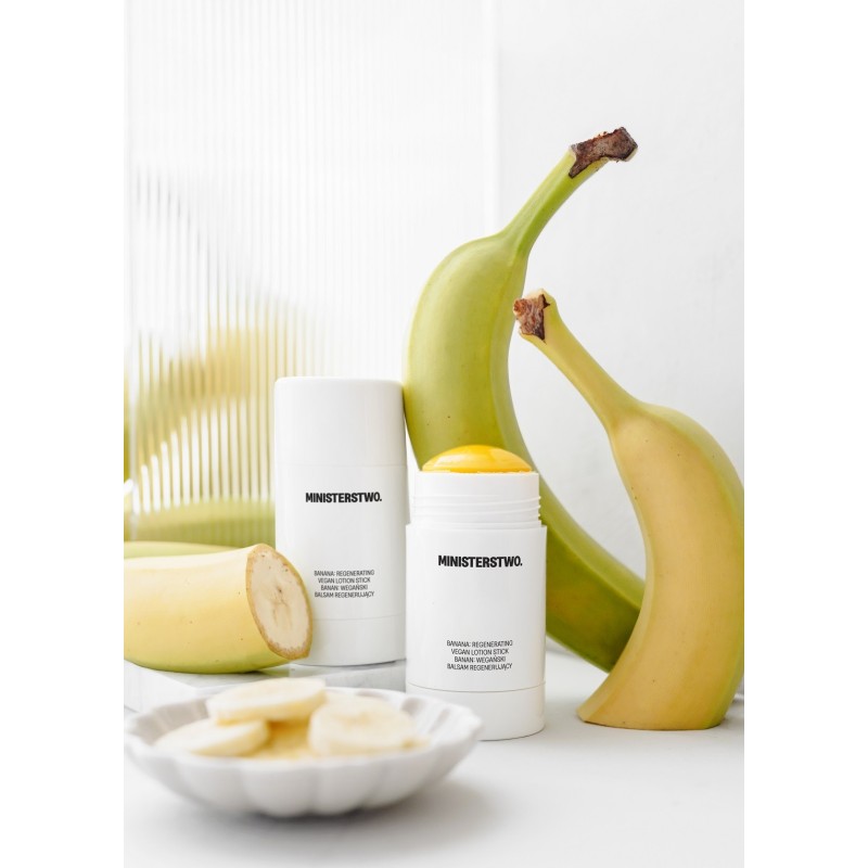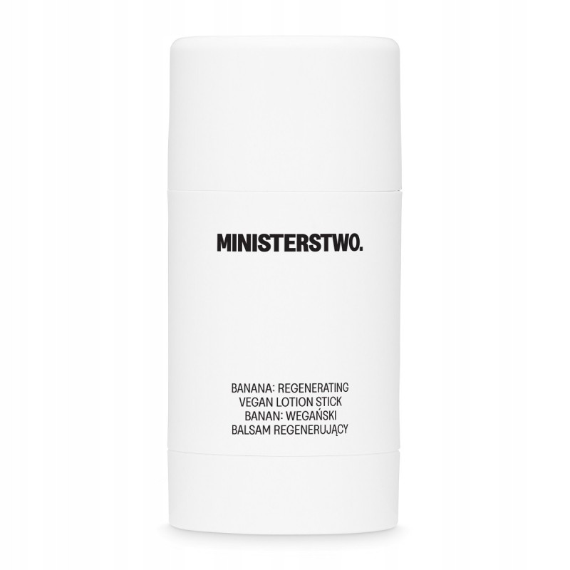 Wegański balsam w sztyfcie o zapachu banana od Ministerstwa Dobrego Mydła. Regeneruje, odżywia i chroni skórę przed przesuszeniem. Zawiera nierafinowane masła, oleje i ekstrakt z banana. Idealny do dłoni, ust, łokci i pięt. Wygodny sztyft, 100% roślinna formuła.