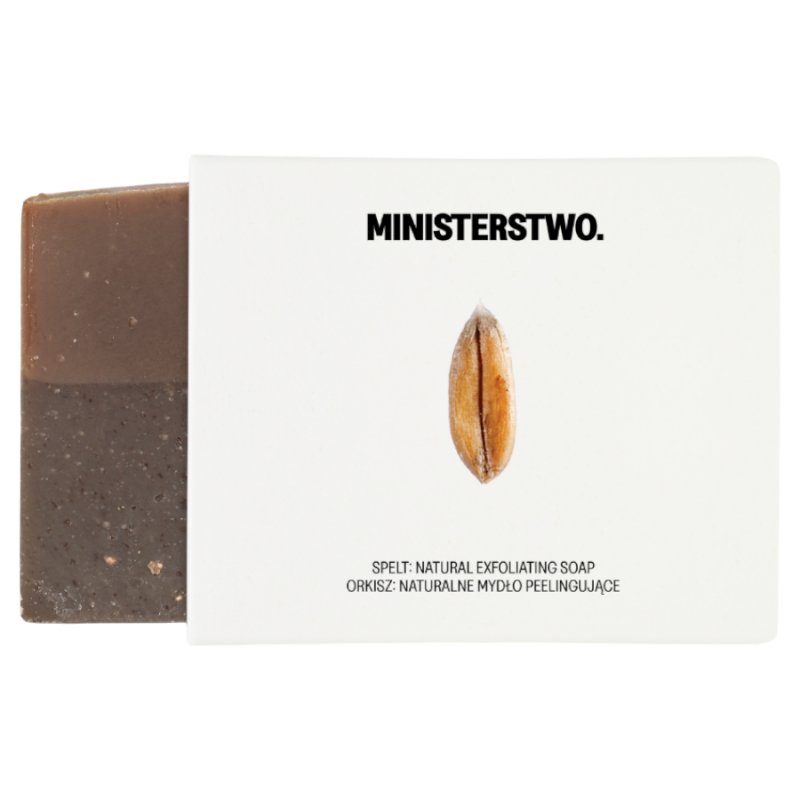 Mydło Orkisz od Ministerstwo Dobrego Mydła to wegańska kostka z płatkami orkiszowymi, kakao i węglem drzewnym. Delikatnie peelinguje, oczyszcza i wygładza skórę. Rzemieślnicze mydło o czekoladowym zapachu do codziennego mycia.