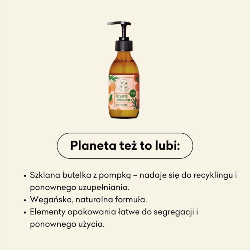 To nie żadne „mydło w płynie” z drogerii – to rzemieślniczy mikst, który pachnie jak włoski targ w środku lata: mandarynki aż się proszą, by je schrupać, a rozmaryn dodaje całości leśnej pikanterii. Szklana butelka, porządna pompka, żelowa konsystencja – i gotowe. Do rąk? Tak. Do całego ciała? Jeszcze jak.