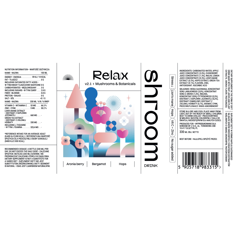Shroom Relax | Napój Wellness z adaptogenami | 330 ml