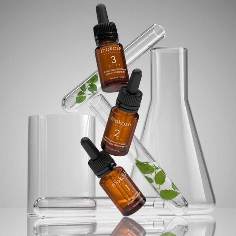 Trzyetapowy zabieg stymulujący odnowę skóry Pokrzywa z miętą od Mokosh. Domowa kuracja inspirowana zabiegami gabinetowymi: peeling kwasowy, neutralizacja pH i serum z mikroigłami. Wygładza, poprawia napięcie i strukturę skóry.