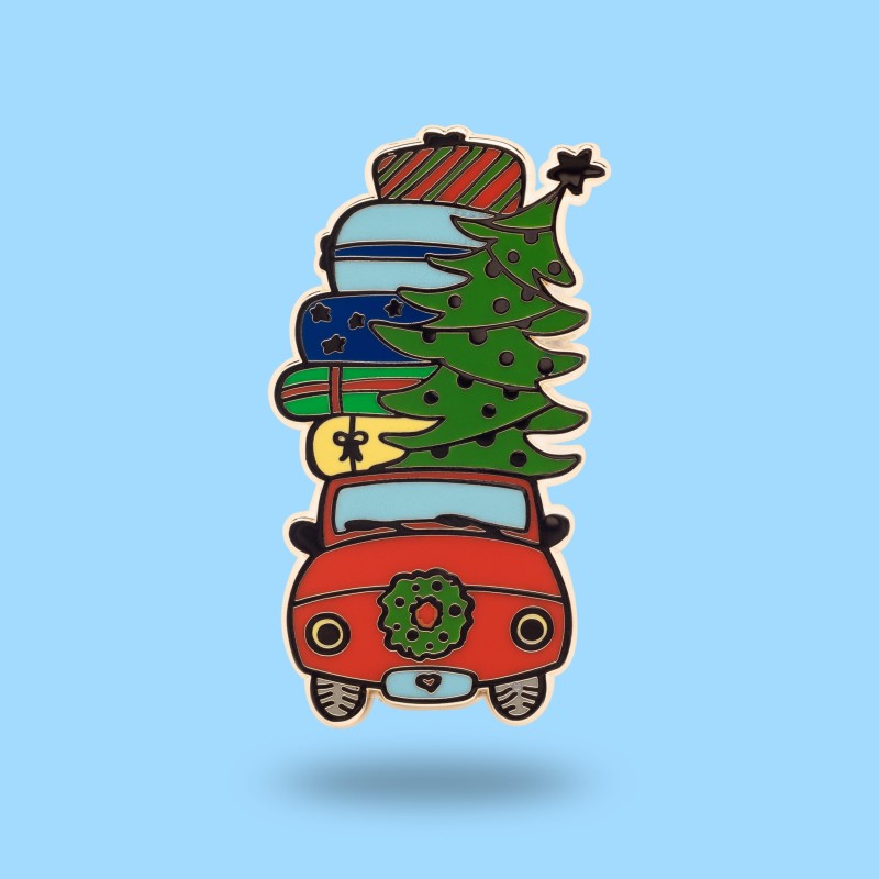 Pin "Świąteczny samochód" to idealny dodatek do świątecznej stylizacji, który świetnie nadaje się również na prezent dla bliskich.