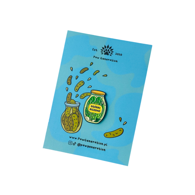 Pin Ogórki kiszone Paw Generation — emaliowana przypinka z motywem słoika ogórków. Solidny metal, mocne zapięcie i charakter z przymrużeniem oka. Idealna do kurtki, torby lub czapki. Zaprojektowana w Polsce, w duchu nostalgii i dobrego humoru.