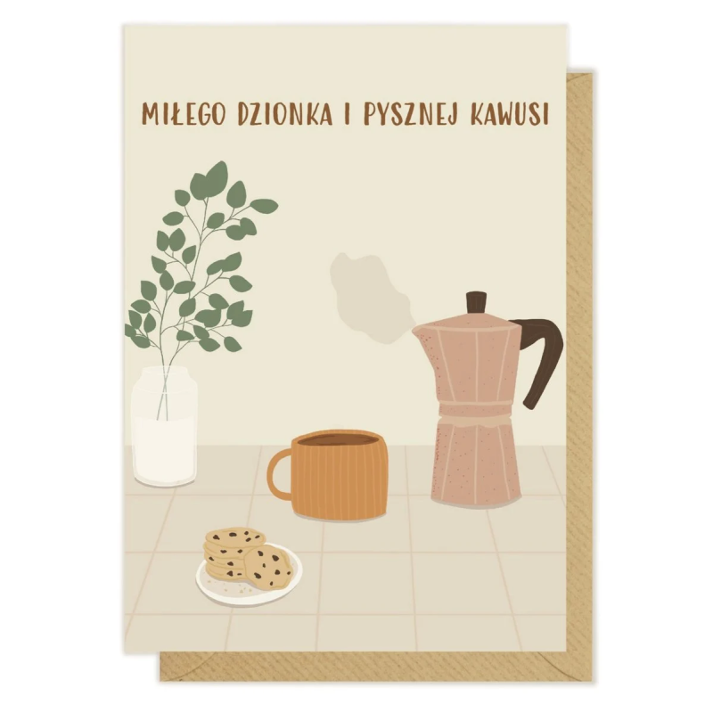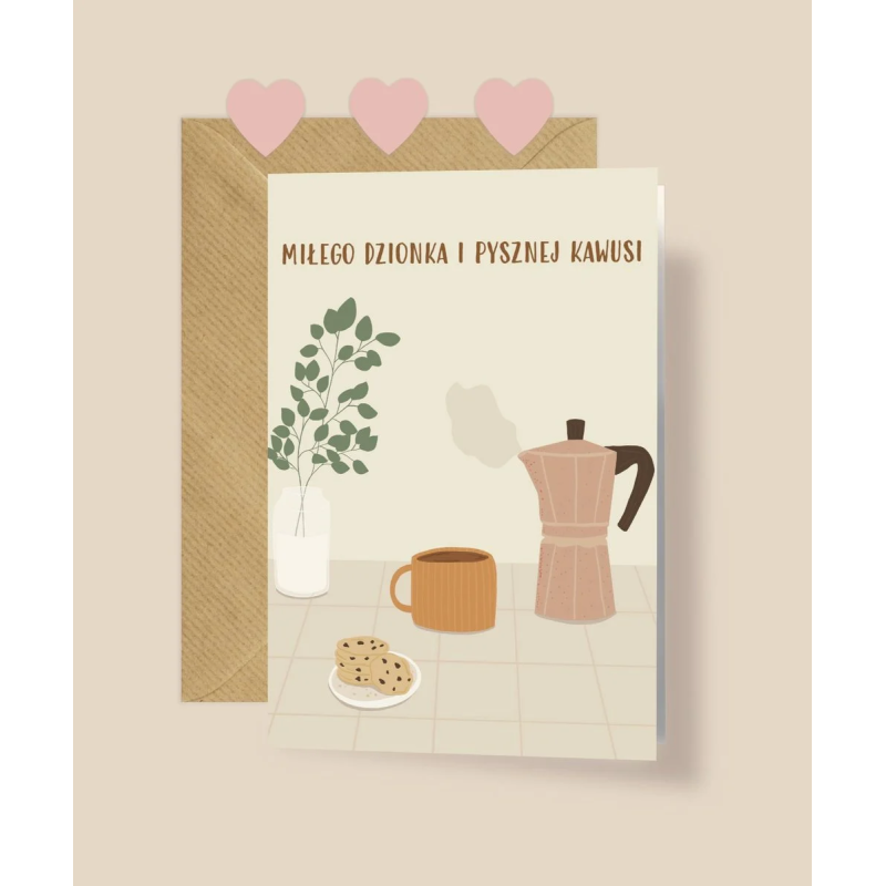 Kartka "Miłego dzionka i pysznej kawusi" to idealny wybór na każdą okazję - urodziny, imieniny, Dzień Nauczyciela, czy po prostu, aby wyrazić swoje uczucia bez specjalnego powodu.