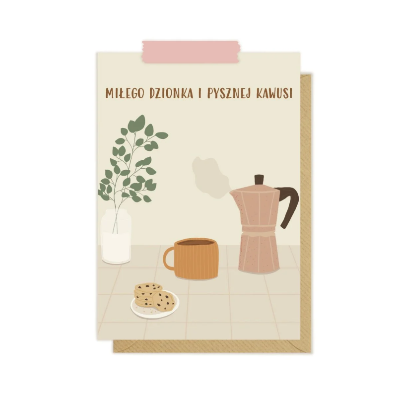 Kartka okolicznościowa "Miłego dzionka i pysznej kawusi" | Pink Pug
