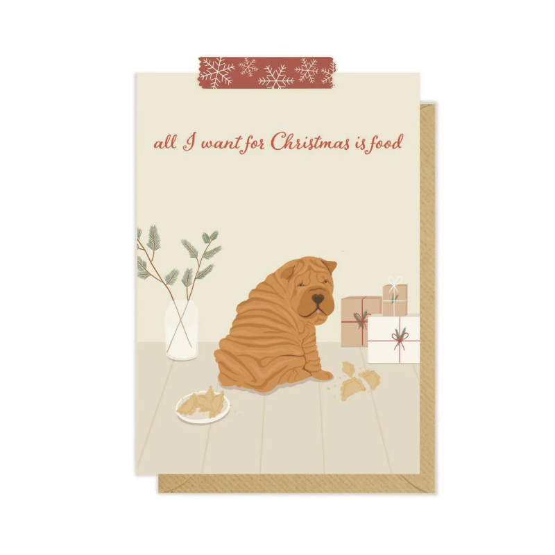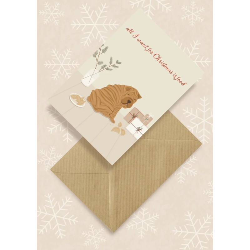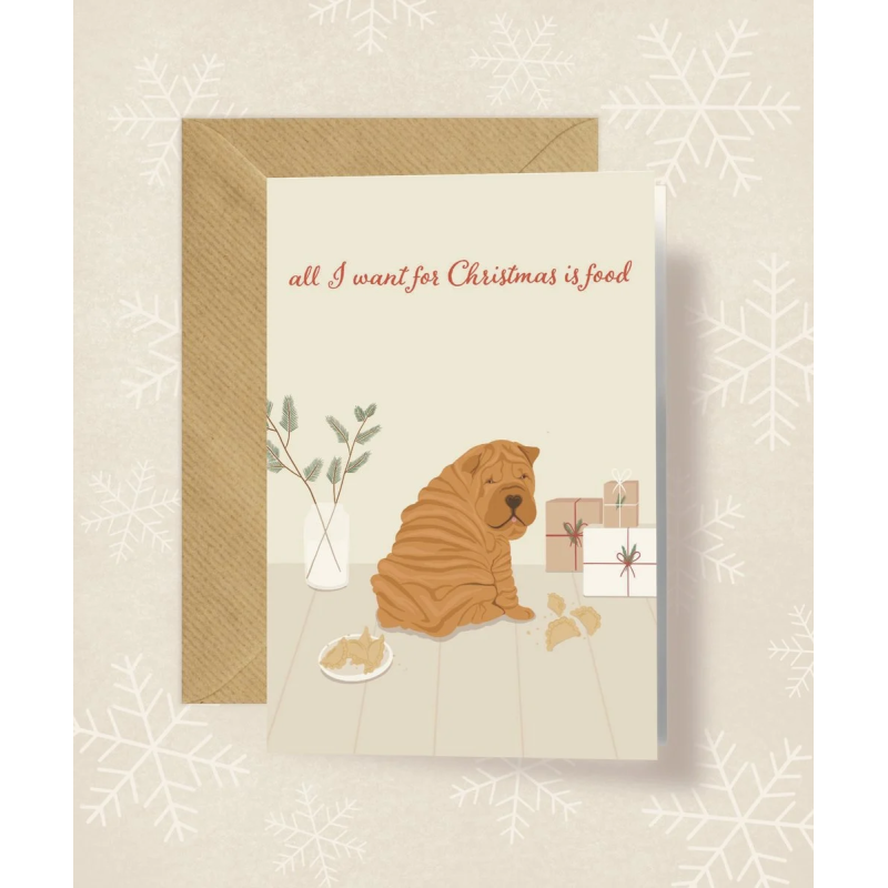 Kartka okolicznościowa "All I Want For Christmas Is Food" | Pink Pug