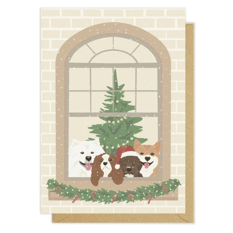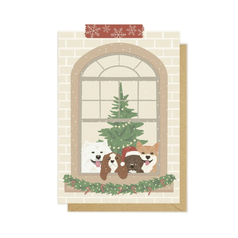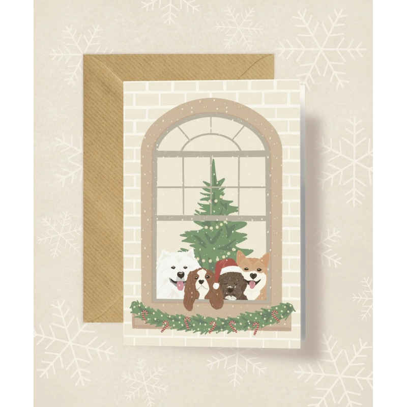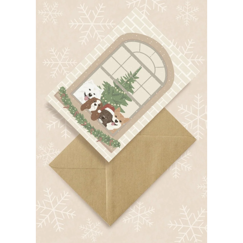 Kartka okolicznościowa "Pieski w świątecznym oknie" | Pink Pug