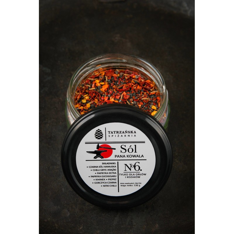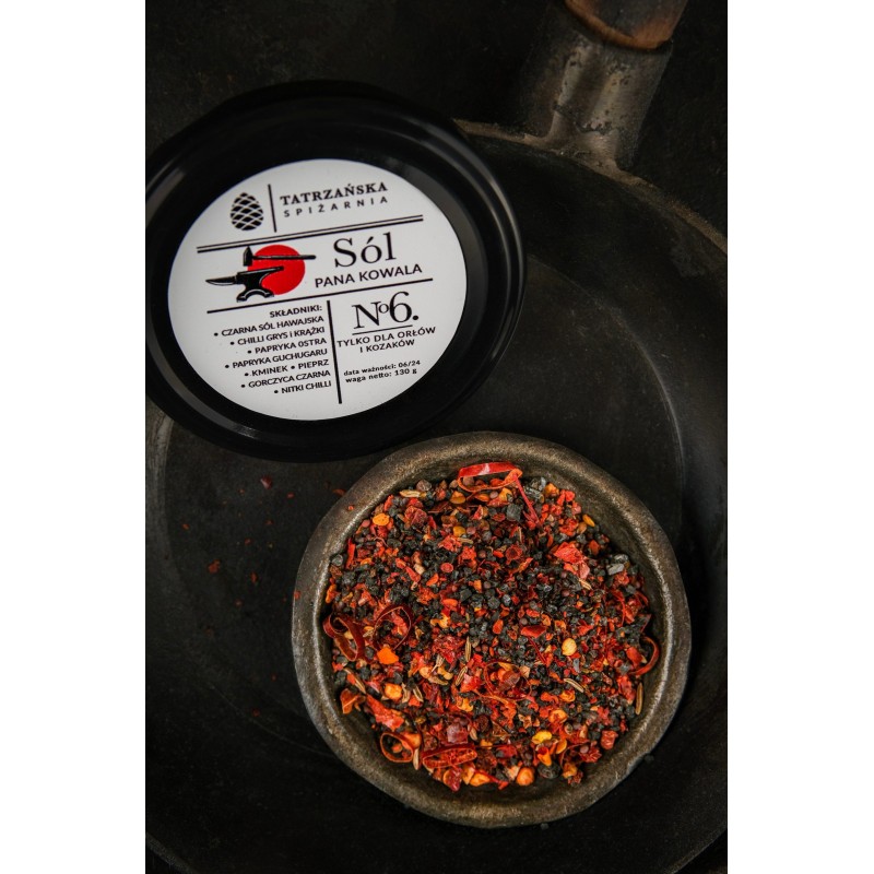 Sól Pana Kowala to mieszanka dla tych, którzy w kuchni nie boją się ostrzejszych nut. Chilli, gochugaru, kminek, czarna gorczyca i hawajska czarna sól morska razem tworzą kompozycję, która podkręca smak potraw i sprawia, że nawet zwykła kanapka zaczyna mówić ludzkim głosem. Albo przynajmniej pikantnym szeptem.