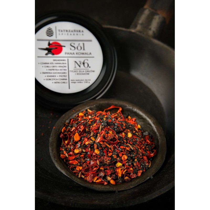 Skład: hawajska czarna sól morska, chilli, papryka gochugaru, kminek, czarna gorczyca