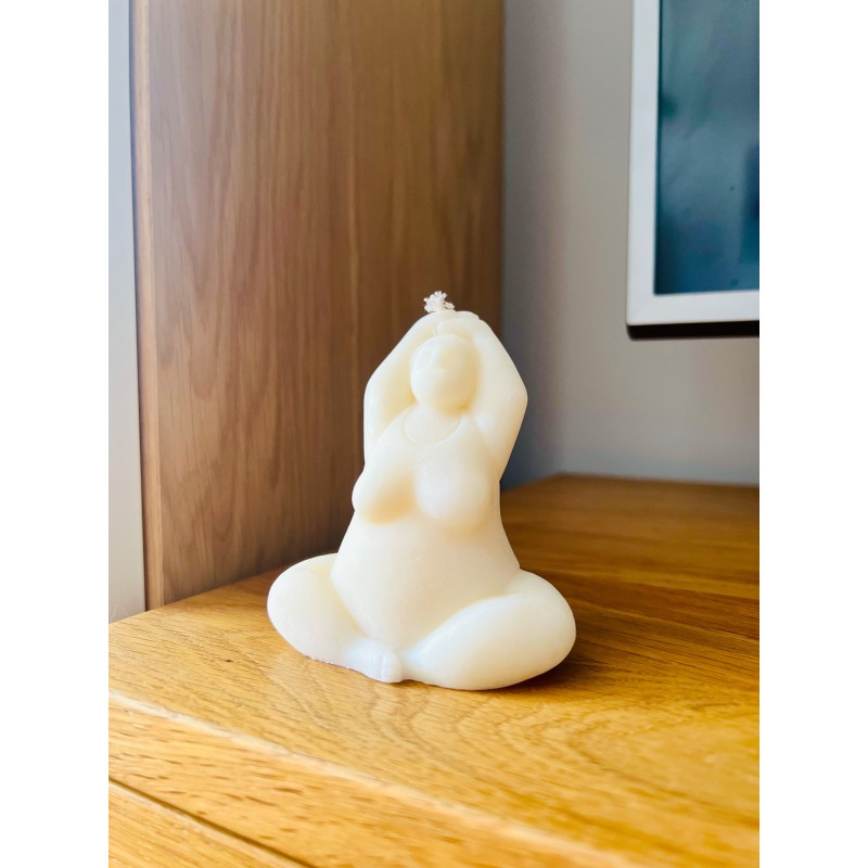 Odnajdź spokój i harmonię z naszą unikatową świecą "Raquel". Ta świeca została zaprojektowana z myślą o miłośnikach jogi i wszelkich form medytacji, a jej kształt inspirowany jest sylwetką joginki w pozycji relaksacyjnej.
