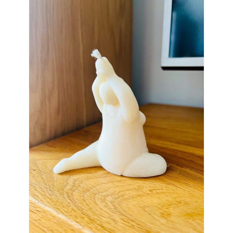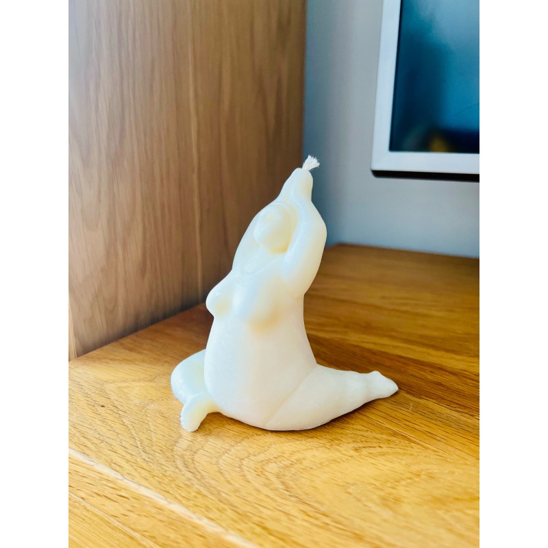 Odnajdź spokój i harmonię z naszą unikatową świecą "Ines". Ta świeca została zaprojektowana z myślą o miłośnikach jogi i wszelkich form medytacji, a jej kształt inspirowany jest sylwetką joginki w pozycji relaksacyjnej.