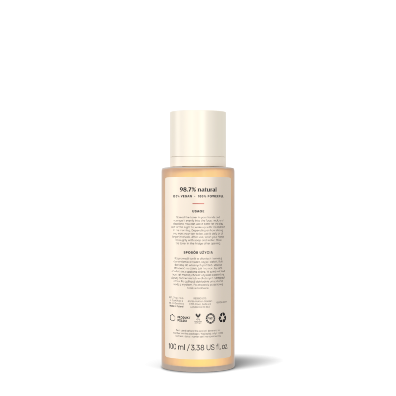 1️⃣ Nocne czary: Bóstwa słońca wiedzą, że najlepsza opalenizna tworzy się w nocy. Użyj toniku wieczorem na oczyszczoną skórę.